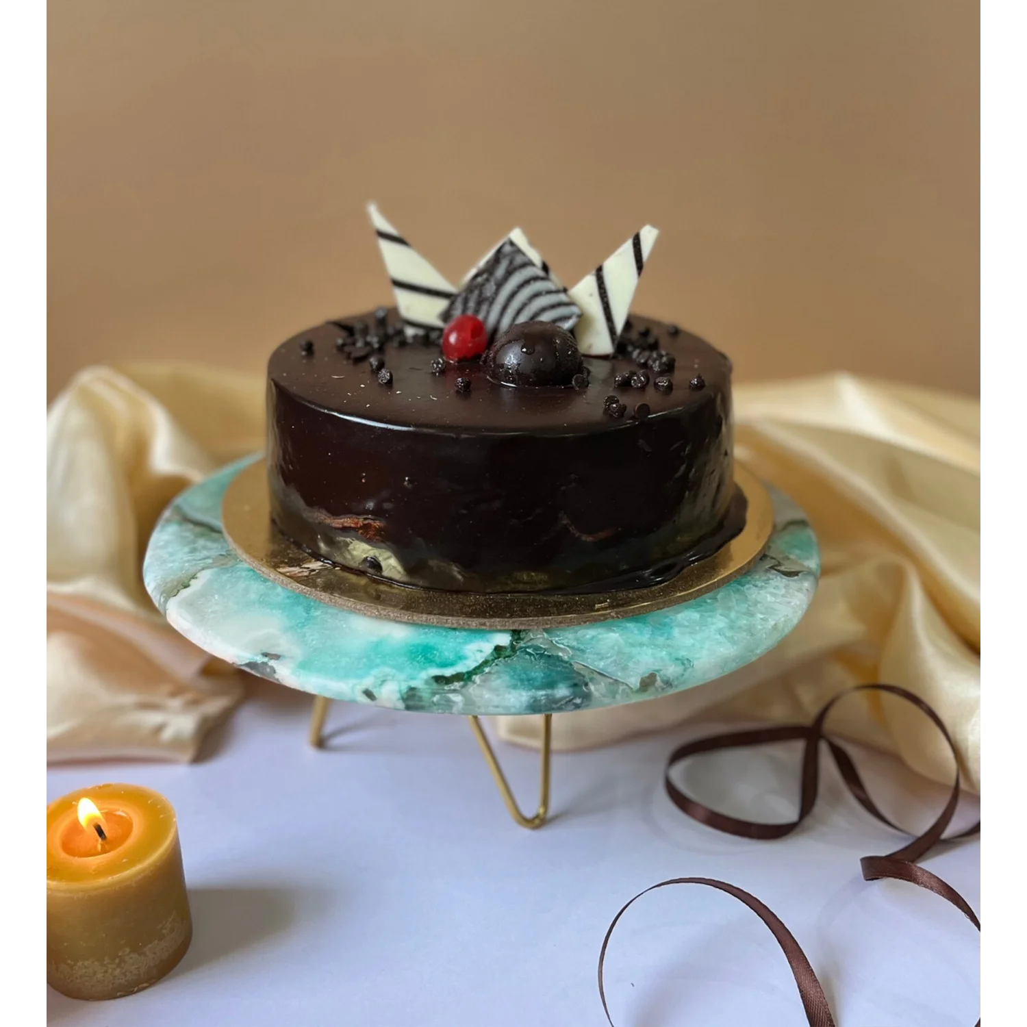 With eight agate colours and a classic 10-inch diameter, it is well suited for cakes, pastries, and celebratory displays. The contrast of stone with either a warm wood base or a sleek metal base gives the piece a balanced and refined presence.