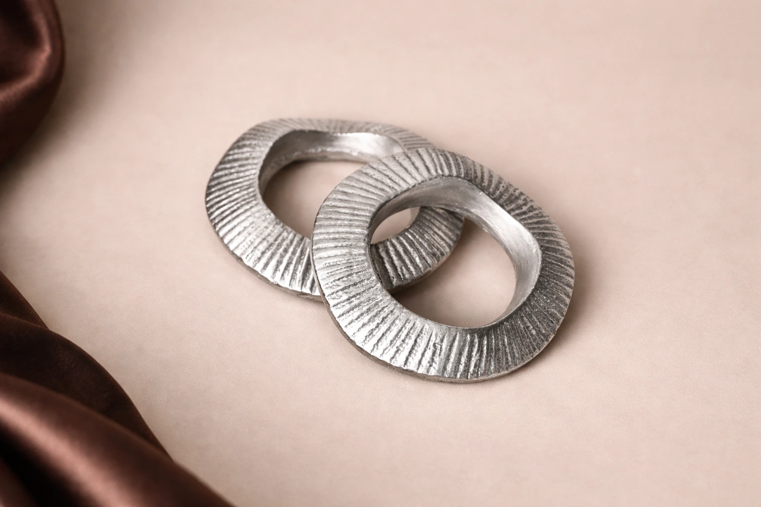 Available in antique silver and antique gold finishes, the Gehna rings offer a soft-spoken statement suited to festive meals or intimate dinners alike. Choose your set, 2, 4, or 6, to suit your gathering, and enjoy how easily they pair with natural linens, stoneware, and hand-thrown serveware.