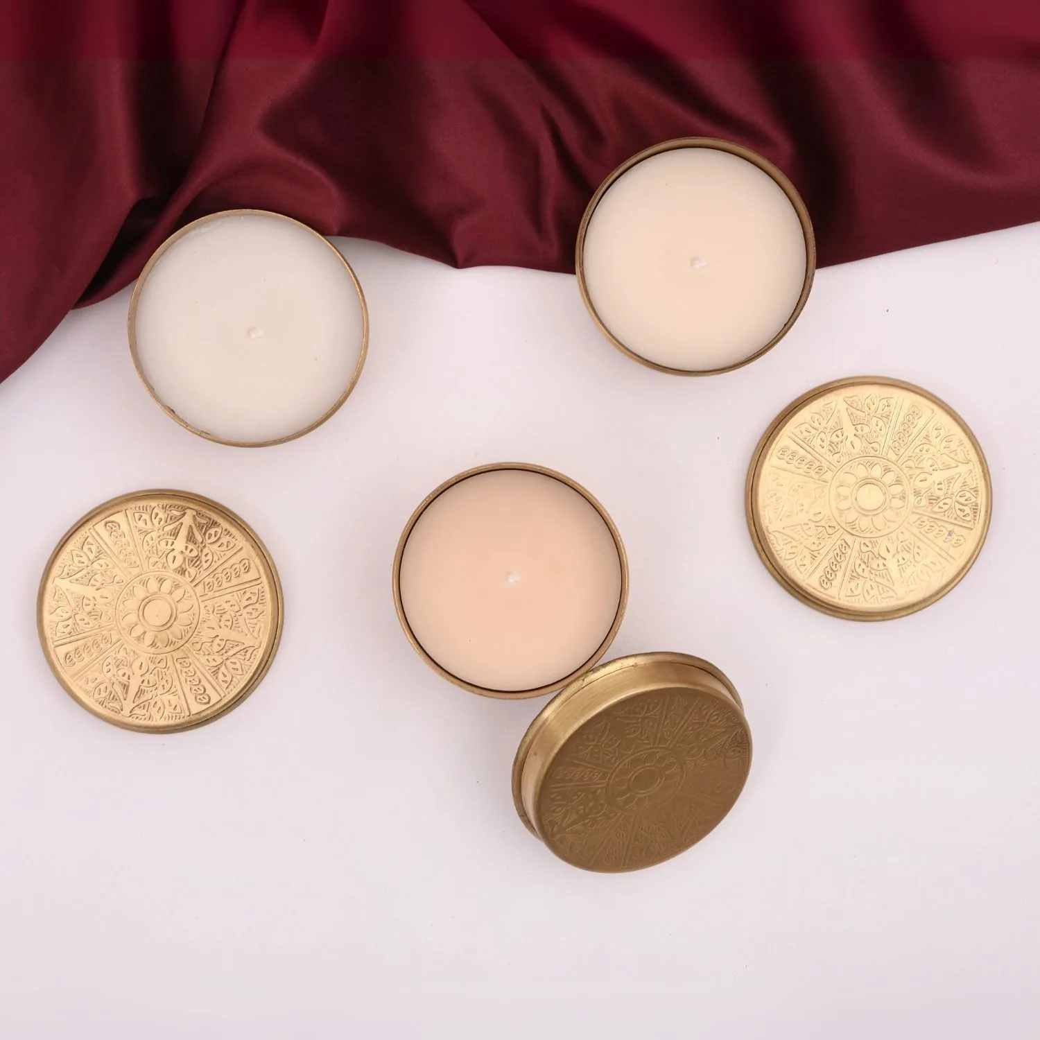 A celebration of fragrance, craft, and heritage, the Heritage Brass Candle Gift Box unites timeless artistry with mindful living. The set features three hand-poured soy candles housed in elegant brass containers, handcrafted in Moradabad, a district celebrated for its centuries-old brasswork under the ODOP initiative. Each fragrance tells its own story: Mogra, delicate and floral, recalling moonlit courtyards; Rajnigandha, lush and sweet, evoking twilight gardens in bloom; and Chandan, warm and woody, carrying a meditative calm. Designed as keepsakes, the brass vessels remain long after the candle has burned, embodying tradition and artistry in lasting form. Presented in Pravaah’s signature eco-friendly gift box with optional handwritten note, this collection is perfect for Diwali, weddings, or as a treasured addition to personal rituals.